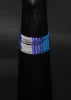 This contemporary tribal necklace, called waterfall, is beaded using seed beads in matte, and metallic silvery white, turquoise and blue beads which have a crystal look. Tribal patterns begin at the top of the necklace and form a waterfall draping effect.