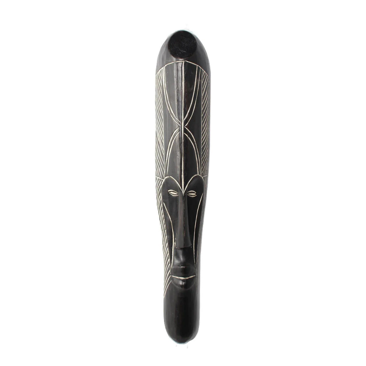 Fang Tribe Painted Mask – The Fang people hand carve these wooden masks that are used during rites of passage initiation ceremonies. The bright colors represent prosperity and good luck. Fang masks and figures are distinguished by their schematic simplicity.