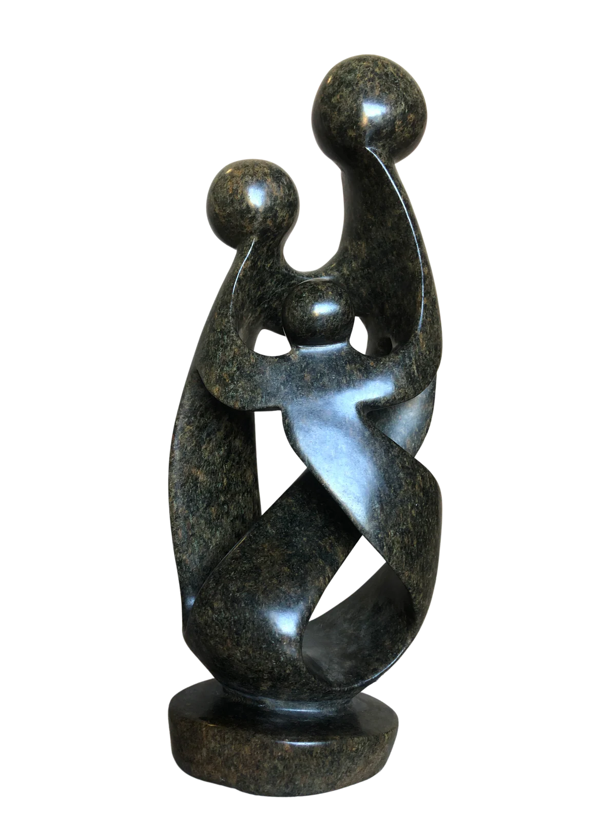 Shona Tribe Serpentine Rock Family of Three – A Shona sculptor hand crafted this beautiful family sculpture in serpentine stone. Zimbabwean artists are well-known for their stone carvings, and they are among the world's most skilled carvers. For nearly a thousand years, the Shona have been hand sculpting stone into works of art. Although the craft is ancient, the style has evolved over time, and the sculptures created today are both beautiful and elegant. The contemporary yet timeless shape of these sculptures adds opulence to the home and complements any décor.